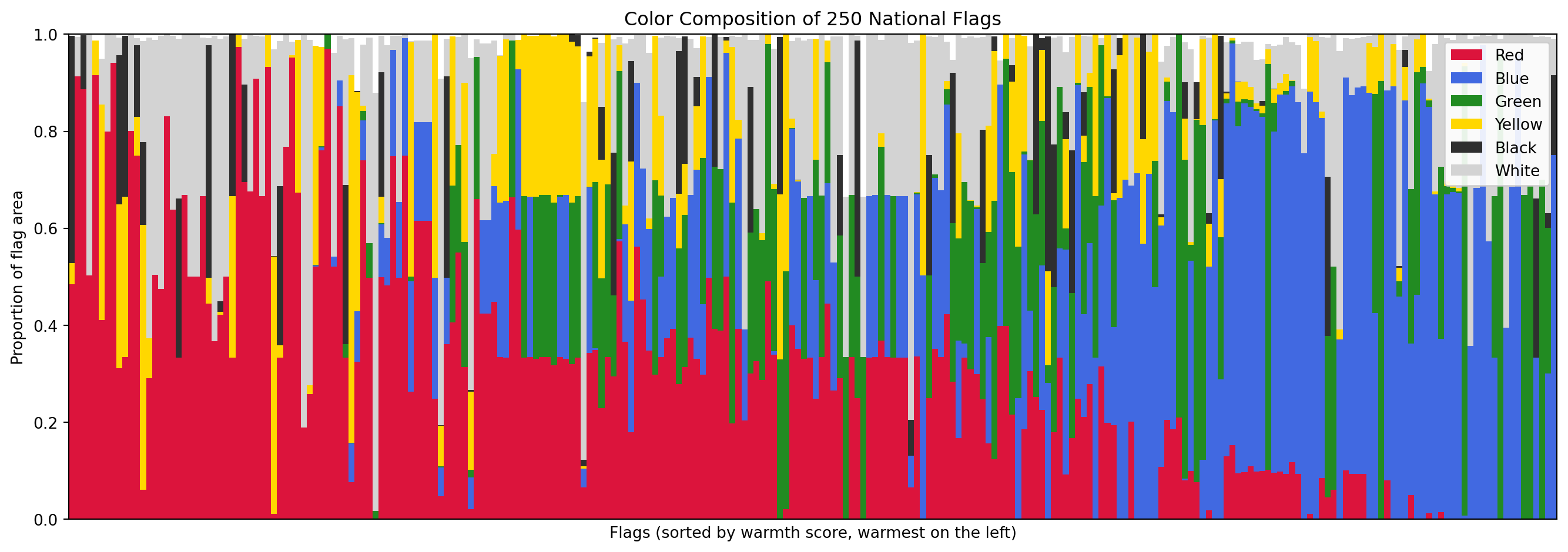 We began with 250 rectangles of color and ended with a quantitative portrait of how nations represent themselves. The journey moved through three stages, each building on the last.