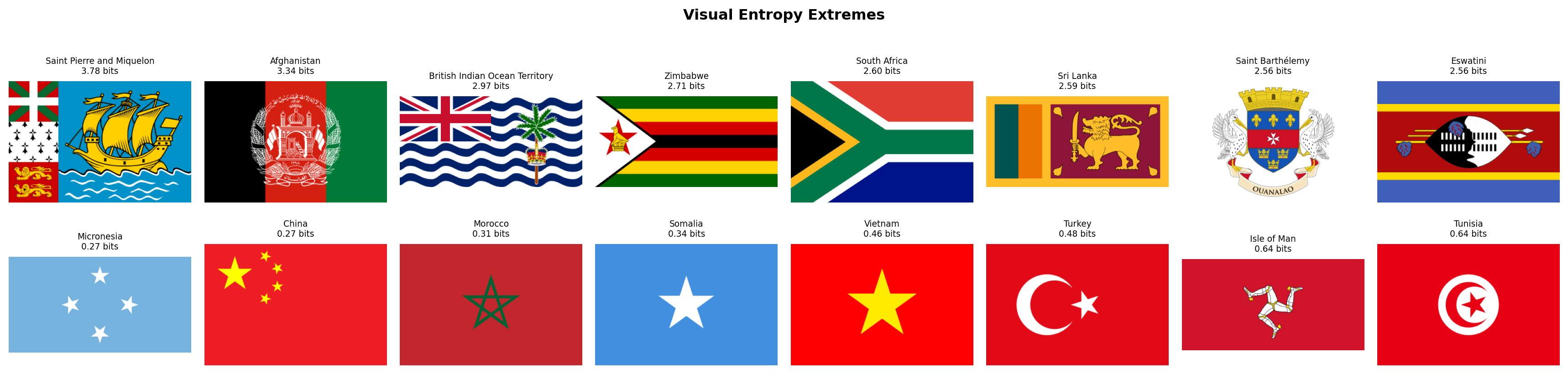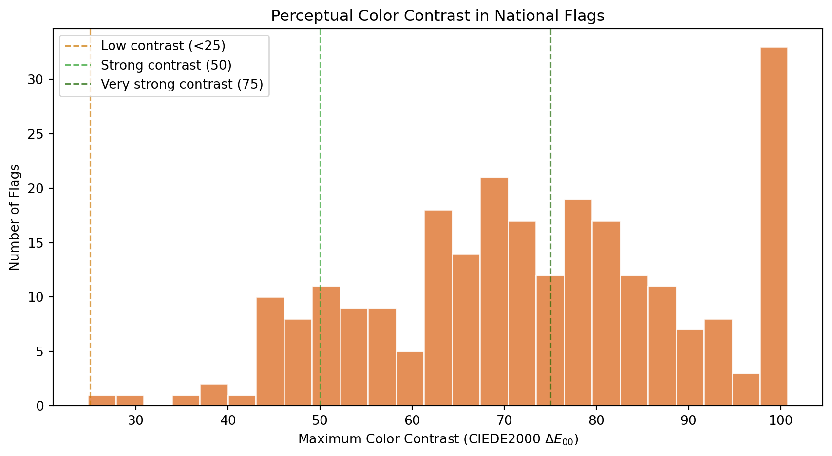 2. **Wealth simplifies, inequality complicates.** Wealthier nations tend toward simpler, cooler flag designs, while more unequal societies use more colors and higher contrast. This mirrors a broader aesthetic pattern: the same minimalist impulse that drives modern corporate branding appears in the flags of developed nations.