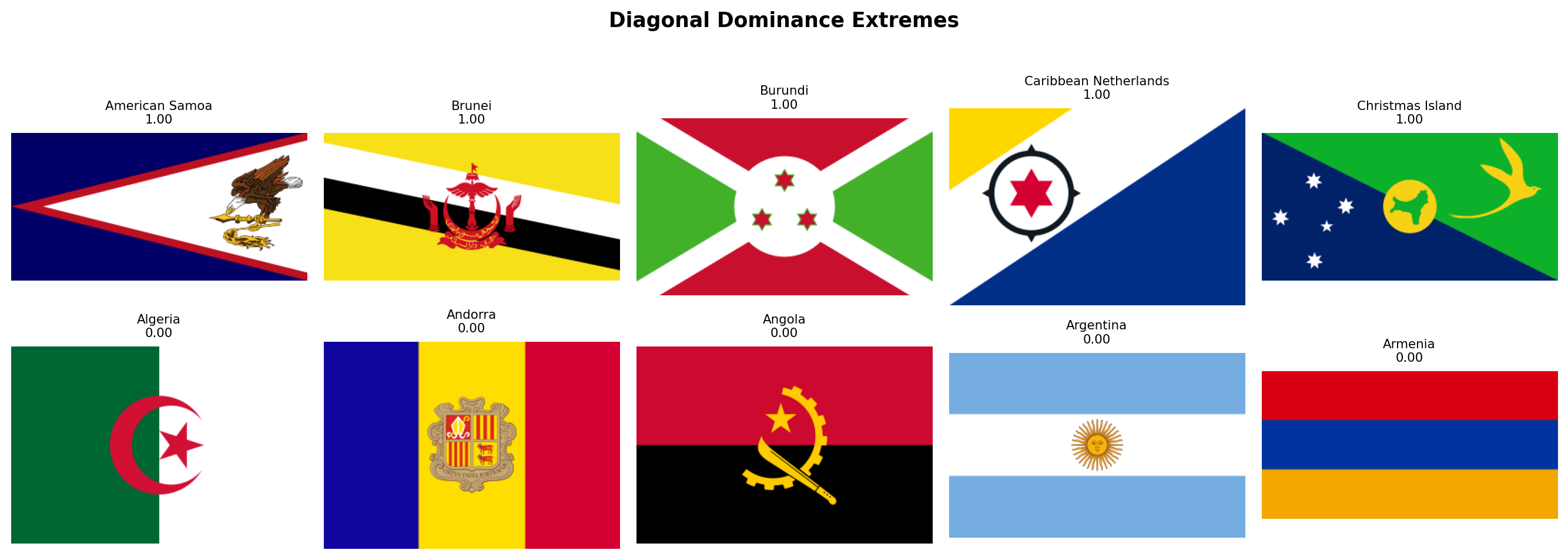 1. **Colonial history is the dominant structuring force.** Unsupervised clustering recovers the footprint of the British, French, and Spanish empires with no geographic input. The "Colonial Ghost" hypothesis is confirmed: flags inherit design traditions from their colonizers, and these traditions persist long after independence.