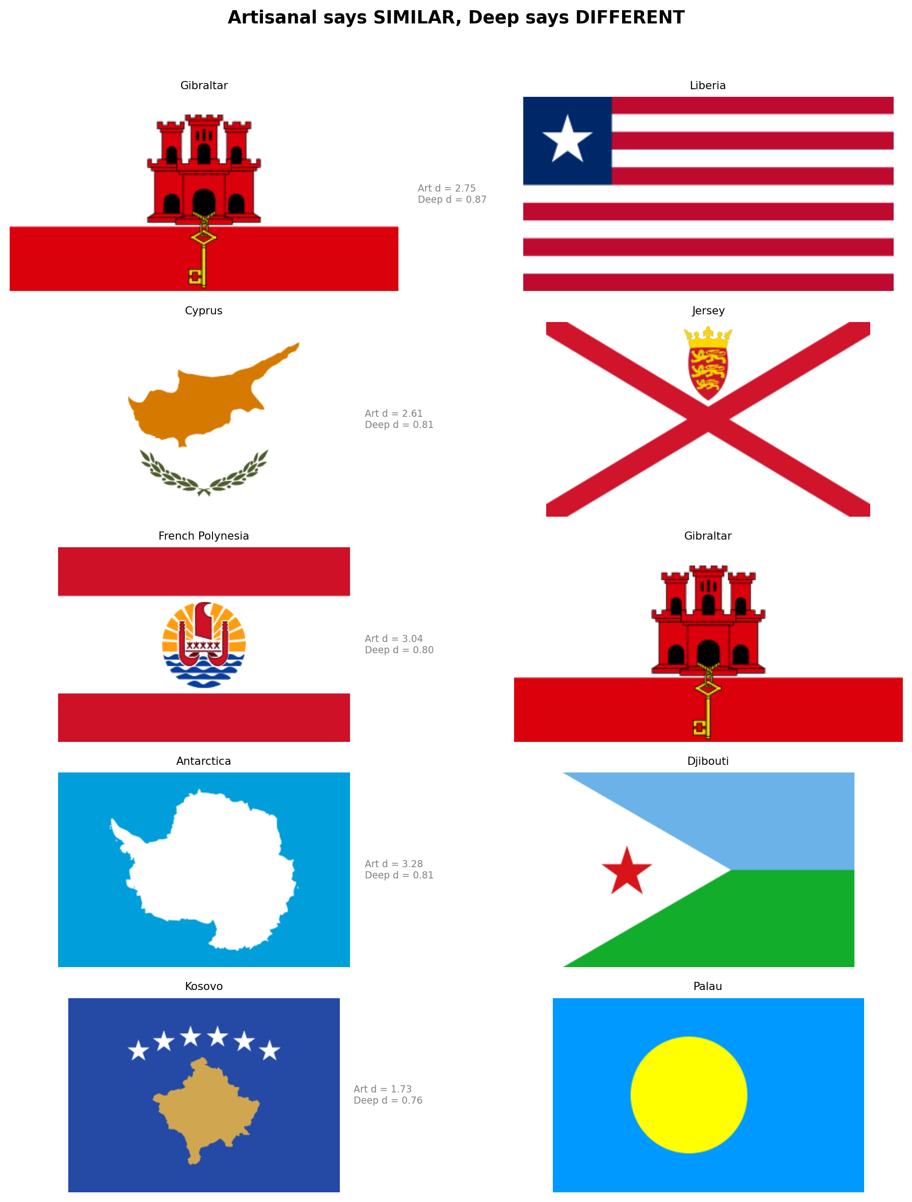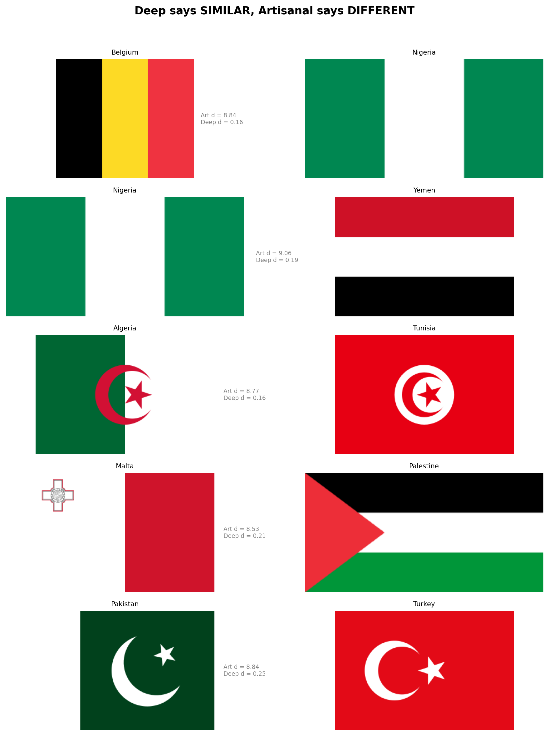 This analysis has clear boundaries. The 19 features, though diverse, are not exhaustive: they do not capture symbols (crescents, stars, coats of arms), text, or the semantic meaning of specific color choices. The deep learning embeddings partially compensate for this, but a dedicated symbol-detection pipeline would add a valuable dimension. The external metadata (GDP, Gini, life expectancy) are cross-sectional snapshots; flags, however, were designed at specific historical moments, and matching flag design to contemporary statistics introduces temporal mismatch. Finally, the sample of 250 flags, while comprehensive, is still small by machine learning standards, limiting the power of any individual statistical test.