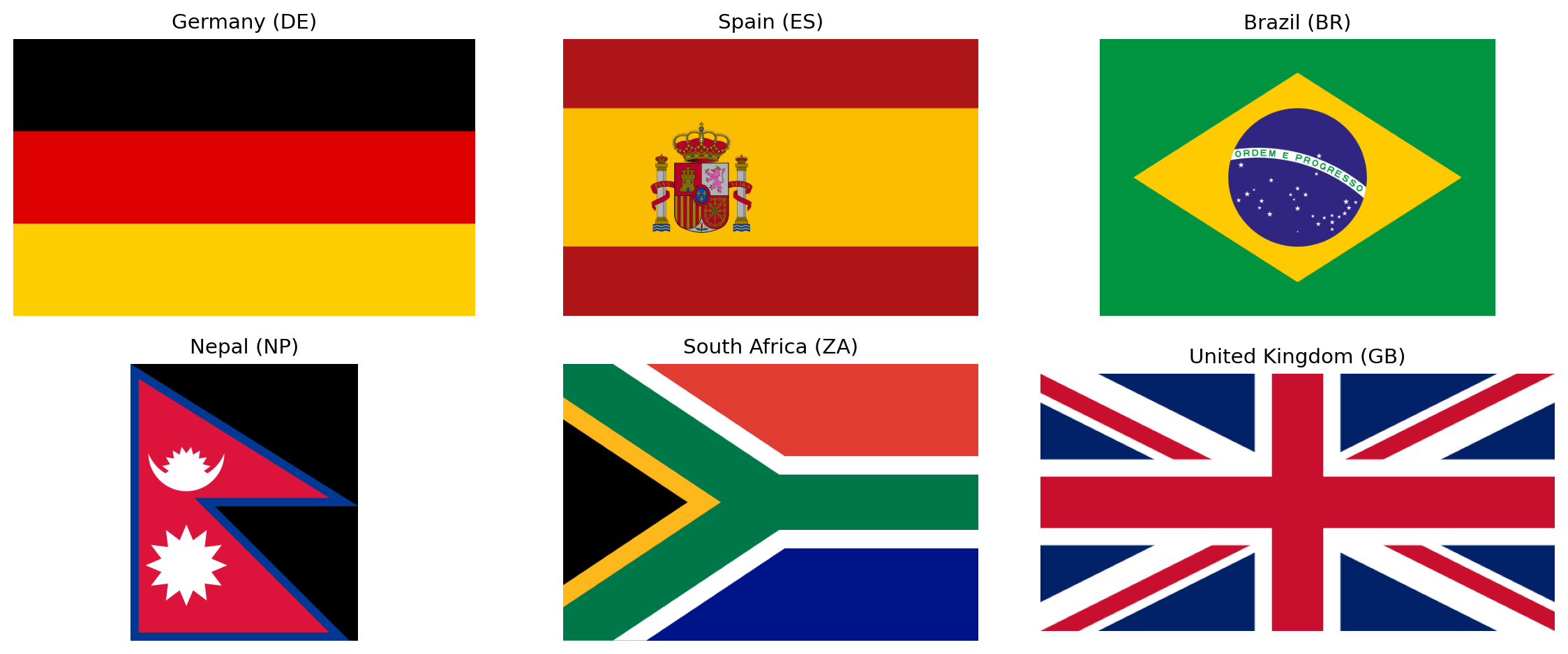 Our source is [FlagCDN](https://flagcdn.com), a public CDN that serves every national flag in **SVG format**, giving us precise vector definitions of colors and shapes rather than lossy rasterized pixels. We pair these with a minimal country index from the [REST Countries API](https://restcountries.com), just enough to label each flag with a name and ISO code.